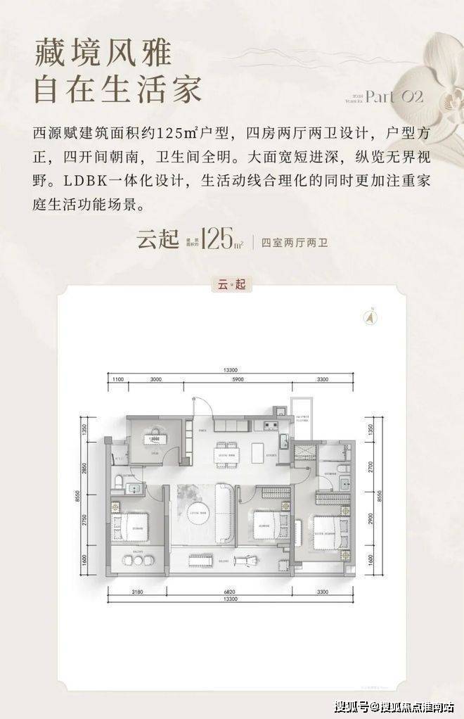 保利西源赋售楼处电话:400-881-8994(售楼处最新电话)上海保利西源赋官方电话:400-8818-994✔(官方售楼处预约看房热线)125㎡ 4室2厅2卫(中间套)四开间朝南设计,南向面宽拉满,采光通风效果俱佳;LDKB空间一体化布局,灵活适配二孩家庭日常居住需求;主卧套房设计,配备独立卫浴与专属衣橱,私密性十足;封闭式阳台可灵活改造,进一步提升空间利用率!