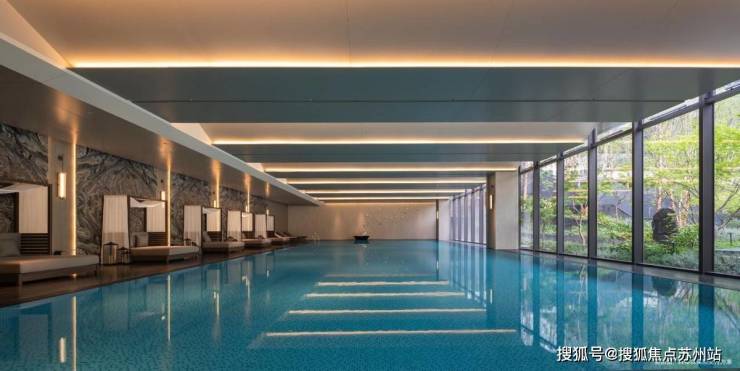 公区上,集合了健身、书吧、恒温泳池、私宴厅等复合内容的约2000㎡下沉式会所,成为圈层生活的核心枢纽;13栋架空层泛会所经设计,有效激活邻里交流与社区活力;此外,社区景观中还规划了约2300㎡大面积水景与约5000㎡的集中式绿地,如此尺度,在苏州住宅市场中可谓罕见。