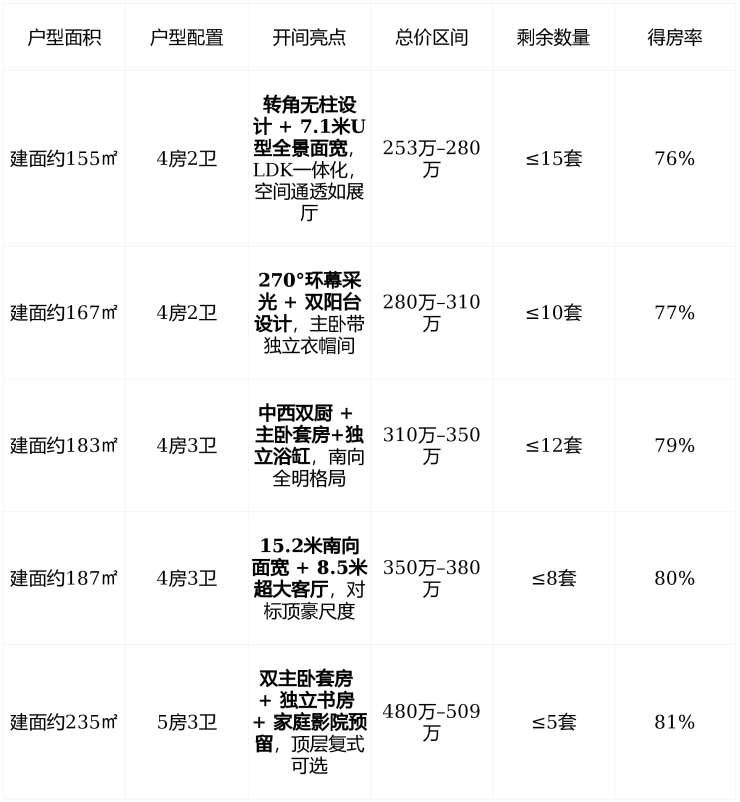 实际成交价:18,500–21,200元/㎡(因楼层、朝向、景观浮动,无工抵、无限时优惠)