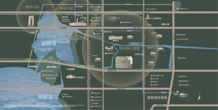 主干道:紧邻金鸡湖大道、中环东线、现代大道,10分钟直达苏州中心、独墅湖隧道,15分钟接入沪宁高速
