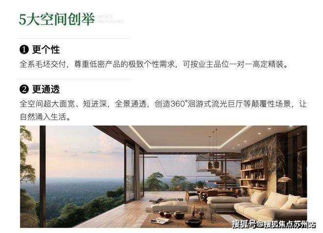 “一”字建筑排布:南向无遮挡,开门即望山,见山见景见天地。私家林荫路入园:林荫掩映,驶入私家道路,树是回家的方向。层层退台:建筑层层退台,皆可享花园或露台,层层别有风景,一层一视界;外立面巨幅全景落地窗,无界交融自然山谷,让建筑隐于山林,如游艇驶入大海。