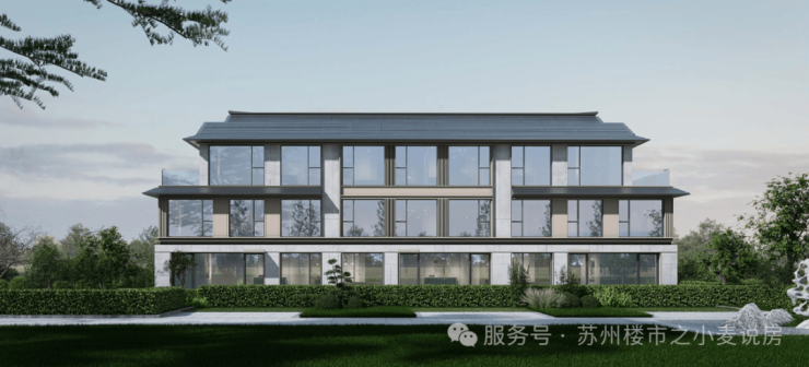 项目的外立面让人惊艳,大面积落地玻璃窗+深灰色屋檐+金属线条勾勒,既有现代感又不失姑苏古城古韵底色。