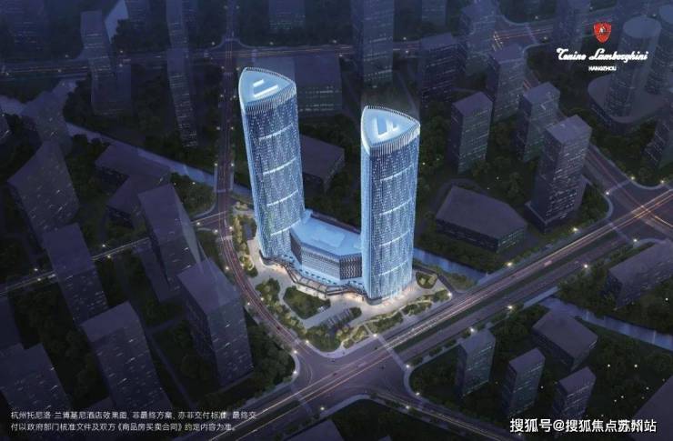 【建筑规划】:T1、T2为250米双塔楼(60层,T1写字楼、T2杭州托尼洛·兰博基尼行政公寓)、T3裙楼。