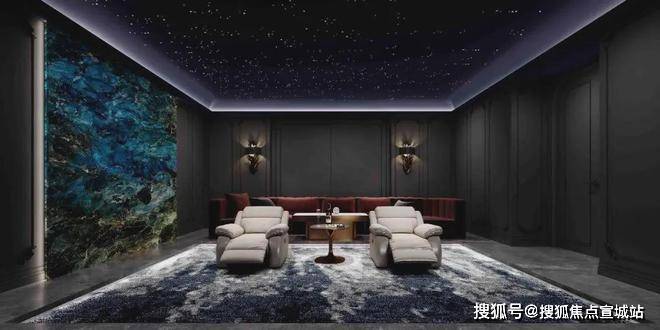 影音室的设计则为业主带来了如同置身星空之下的奇妙体验,华丽的法式雕刻墙以及独特的法式壁炉为客厅增添了一份法国的浪漫与高贵。而卧室中,以山水画为背景,提供了一个宁静而舒适的休憩空间。