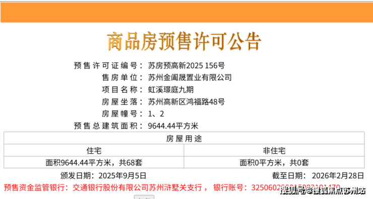 高新区浒墅关板块的中建虹溪璟庭最新一批次房源取证了。
