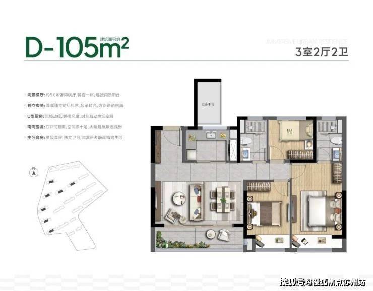 朗阔格局:南北通透,餐客厅与厨房一体化,方正格局
