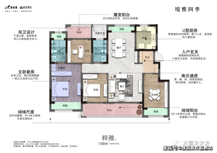 境雅四季以其独特的美的中央空调、德国威能地暖和法国爱的士新风系统闻名于业界.这个高端住宅项目位于高层98㎡/洋房120、130㎡的宽敞空间中,让您尽享至尊舒适.