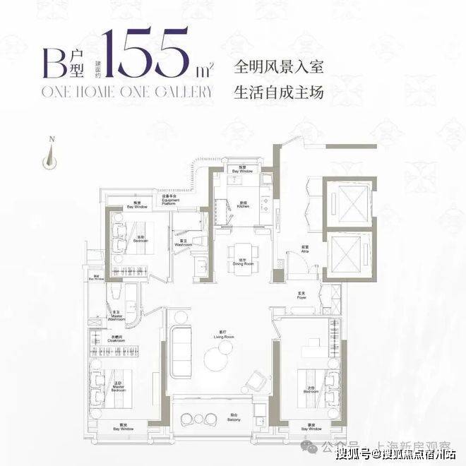 对于刚需购房者而言,建面约155㎡的三房户型堪称“一步到位”的优选。该户型实现三开间朝南,客厅连接6米景观阳台,不仅保证了全屋充足的采光与通风,更能让业主在客厅就能俯瞰社区内的海派景观与远处的城市天际线。4.5米面宽的客厅可灵活划分出休闲与工作区域,适配年轻刚需家庭的“居家办公+亲子互动”双重需求;主卧采用套房设计,配备独立卫浴与步入式衣帽间,保障了主人的居住私密性;两个次卧面宽均超3米,可分别作为儿童房与长辈房,轻松满足三代同堂的居住刚需。值得一提的是,该户型得房率高达82%,远超同区域同类型产品,且支持低首付分期政策,大幅降低了刚需群体的置业门槛,让年轻人也能扎根黄浦核心。