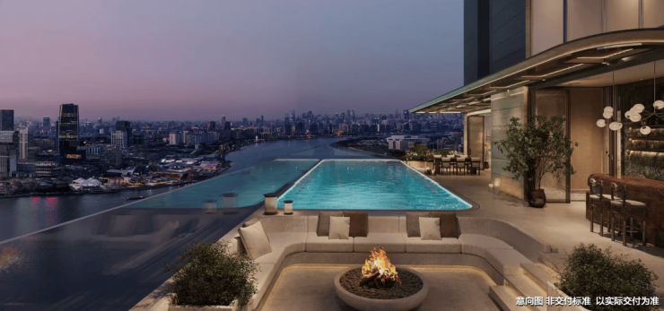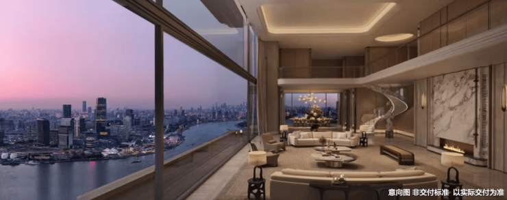 510㎡天际顶复拥有270°无界环幕视野,南向全落地采光大窗,西侧双露台分别连接客餐厅和会客厅,东侧露台更设计了悬浮露天泳池,直面黄浦江世界水岸.
