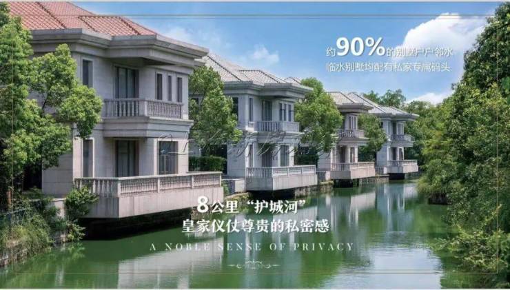 项目规划配有大量草地绿地、树木、各种花草,开挖护城河道,形成1个半岛+13个小岛的分布格局,还在公路旁种植具有观赏和隔音作用的树木,西侧的花墙长达一千米多,力求成为一个一面临山、四周环河、安然静谧的佘山别墅“世外桃源”.
