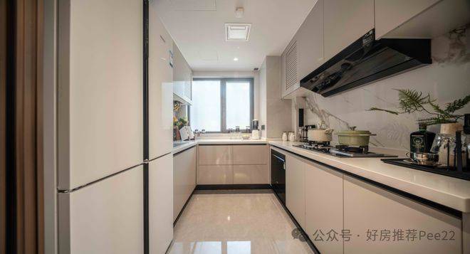 以约109㎡的大三房为例,U型厨房在飘窗的巧妙加持下更加宽敞,操作更便捷,更是能够预留出双开门冰箱位置,堪称是空间利用的革命性提升。