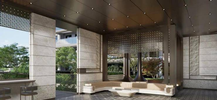 此外,项目借助地势高低差,打造了下沉庭院会所,集茶室、健身房、会客厅等多功能空间于一体,呈现“三维立体景观”。