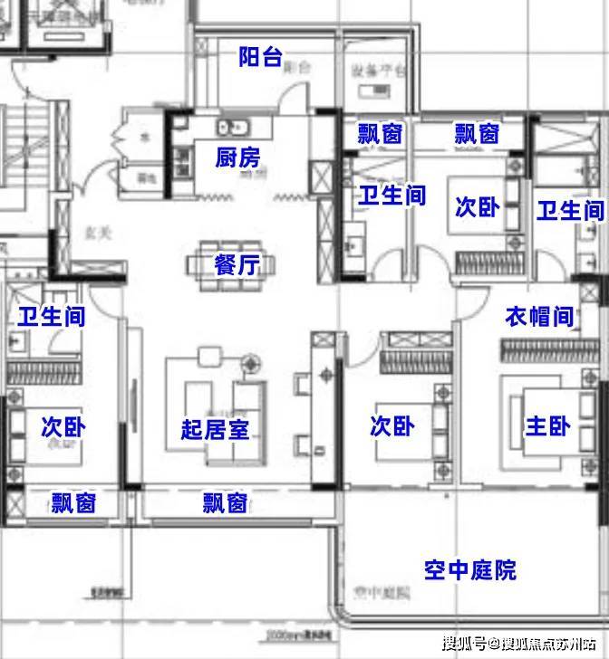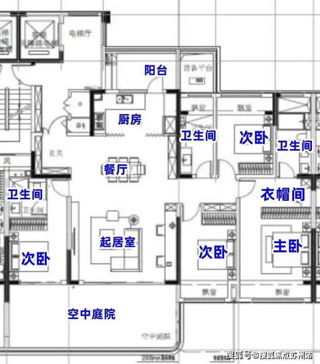 南向四开间,4米开间主卧,带两个衣帽间和卫生间;