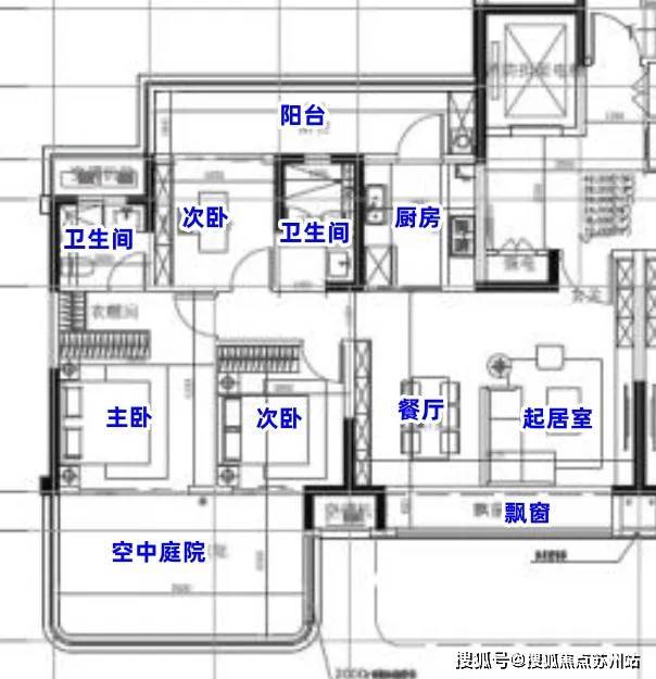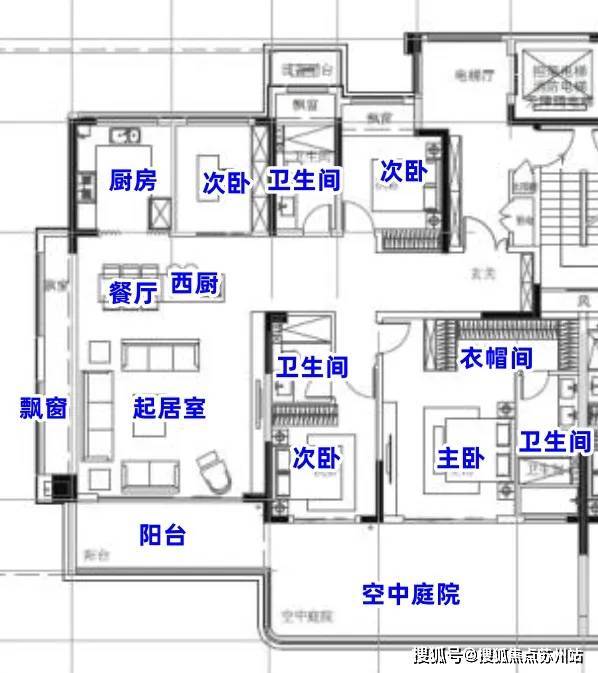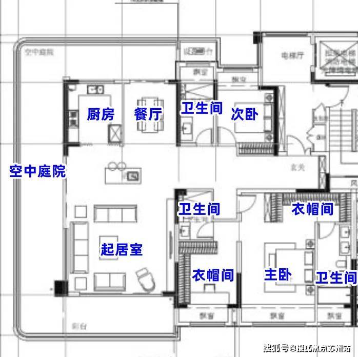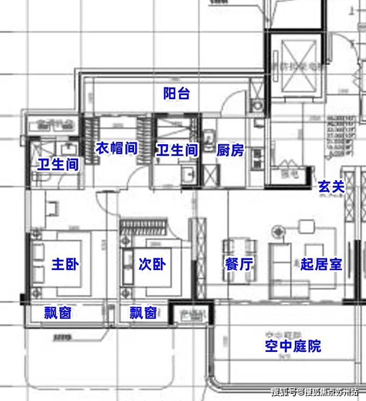 南向三开间,约6.4米南向横厅,连接空中庭院;