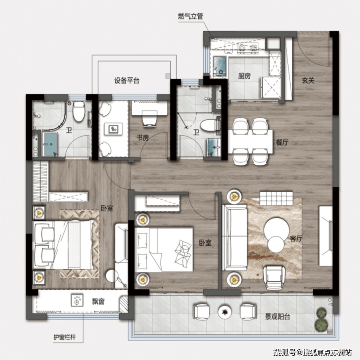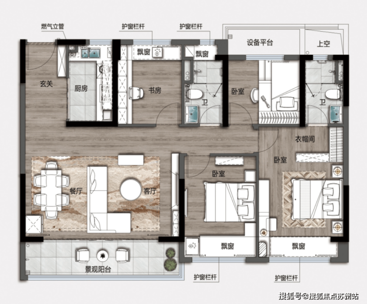 主卧配备独立卫浴、观景飘窗,私享悠静时光