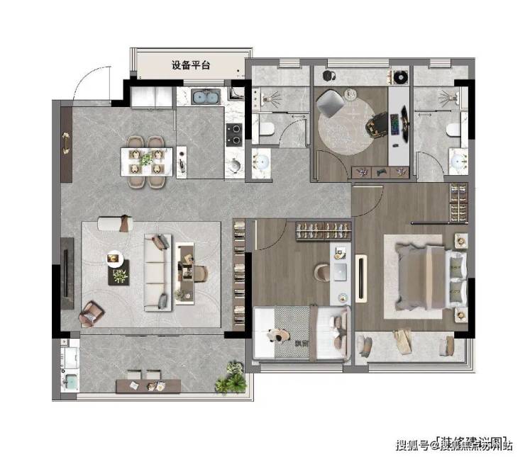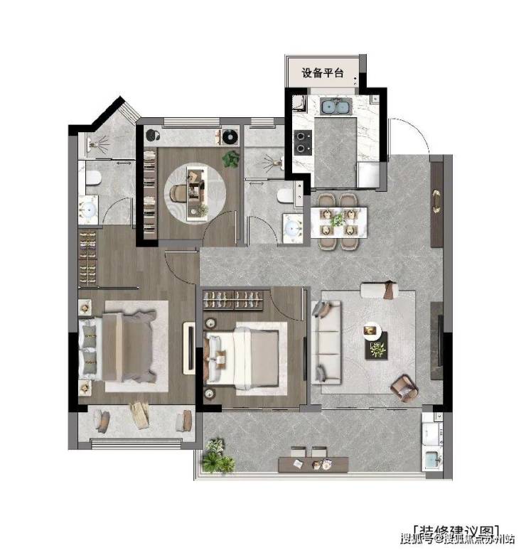 立峯 | 建筑面积约103㎡狮山全能王 三房两厅两卫设计,拥有约6.8米双阳台、U型厨房和全能主卧套房,是狮山区域的全能型户型。