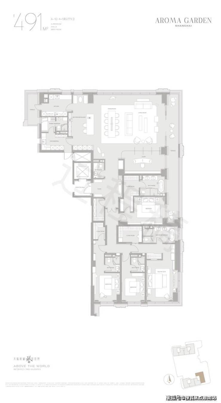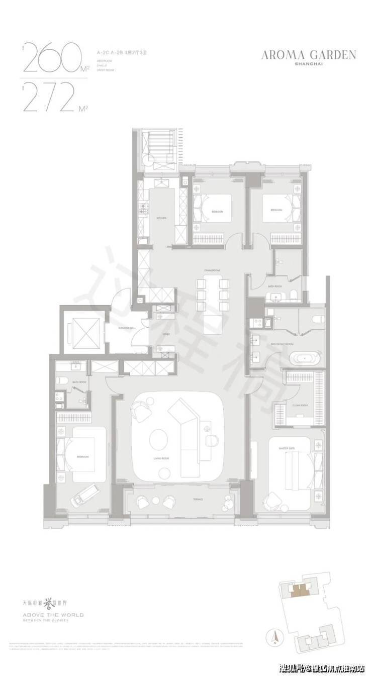 其中,A地块共计150套天际大平层,面积为建面约264-901㎡,主力户型为4房-5房.