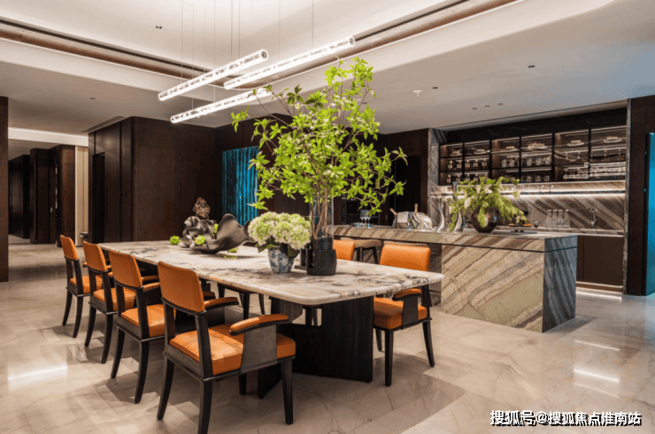 西厨吧台更是匹配了符合空间调性的东方木纹与龙飞凤舞石材,独特的纹理和质感提升了厨房品质与艺术性.