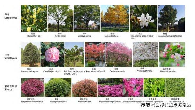 四季更迭的景观植被巧妙布局,共有20多种乔木、小乔、灌木等植物种类,