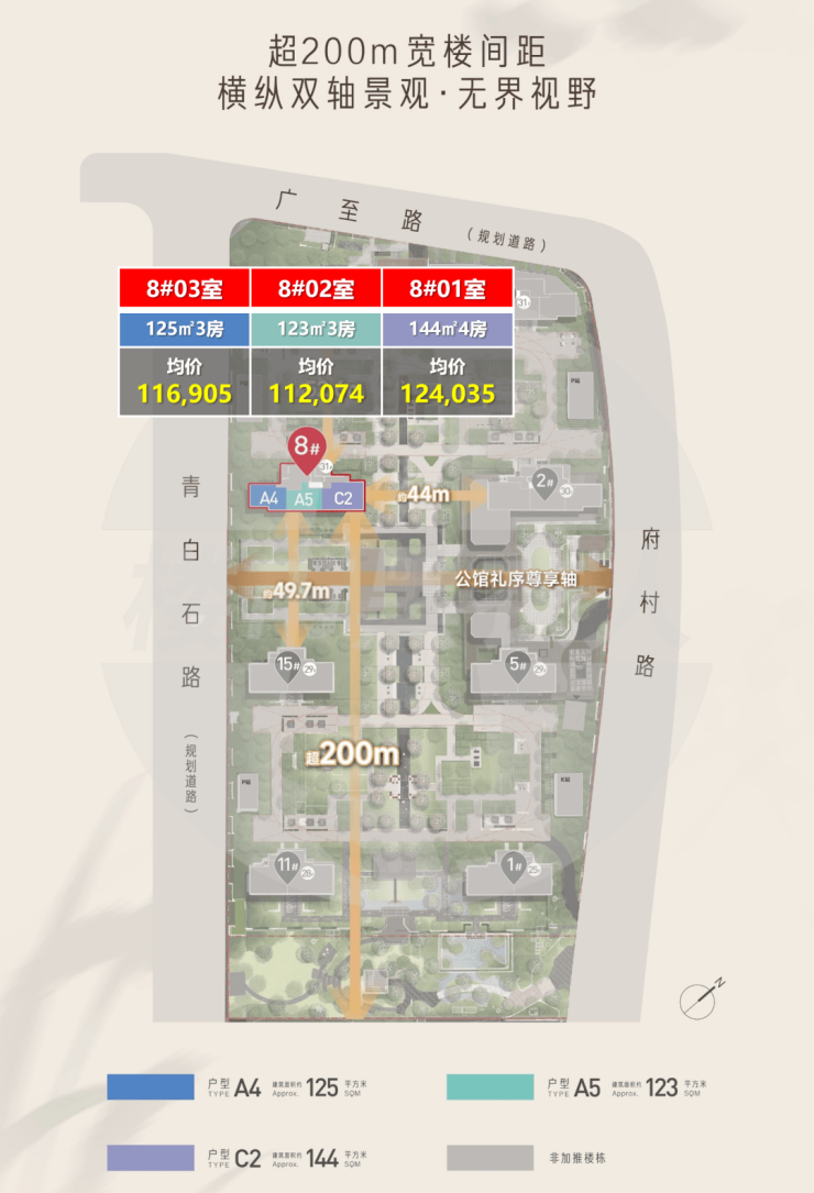 ① 一类是预算更敏感、但又不想牺牲楼层体验的人——答案就是123㎡中间套;