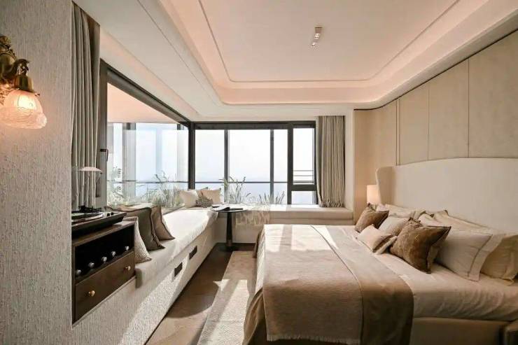 主卧套房270°大转角飘窗,步入式的衣帽间设计,奢华酒店行政套的设计手法,能带来纯正的居家度假式体验。