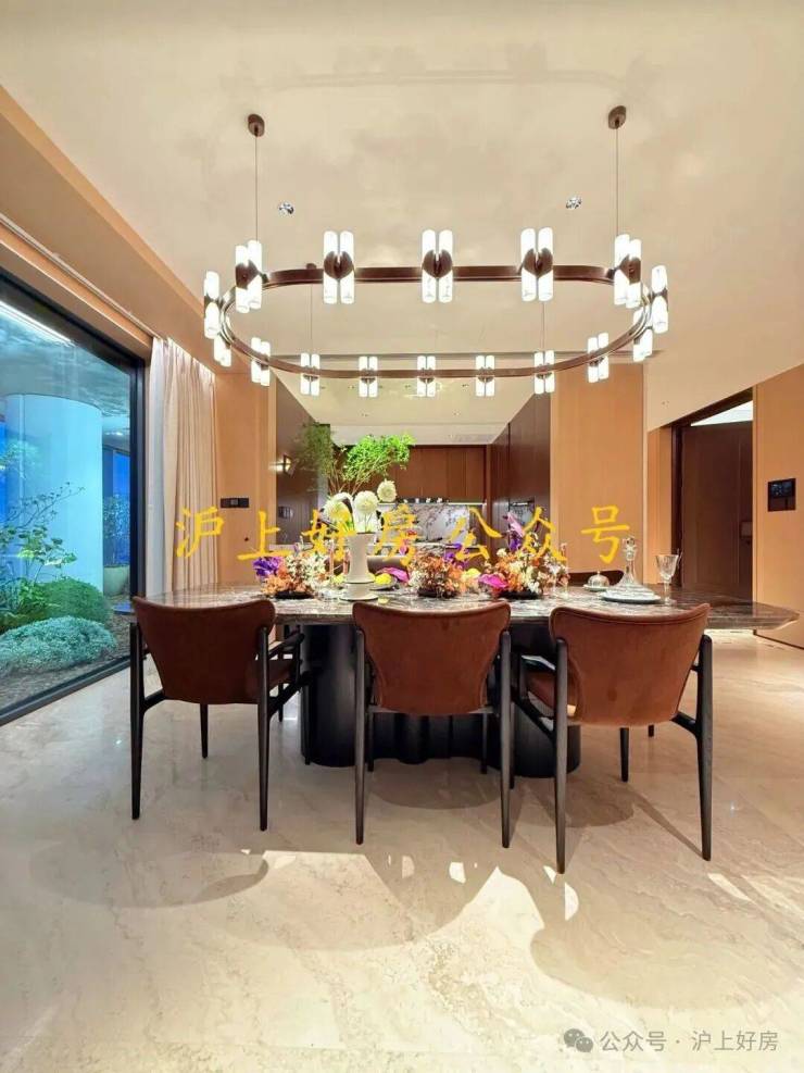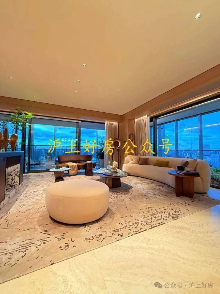 设计背书由问鼎国际大奖的著名设计师吴滨操刀,延续其“汤臣一品5亿顶复”的“摩登东方”理念。以黄浦江为灵感,营造“阅尽千帆后的宁静与松弛感”。通过8.5米南向宽厅、270°环幕玻璃、无冗余装饰的减法美学,让空间如江面般舒展,视野极度开阔。