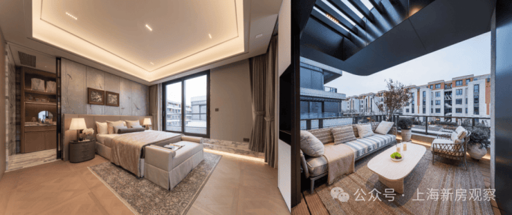 三楼主人层:媲美五星级酒店行政套房的顶层空间,以“超大衣帽间+休息区+四分离卫浴+露台观景区”进阶主人至高享乐。移步环幕露台,无可复制的多面瞰景视界,将百年街区胜景与自然诗意私藏。