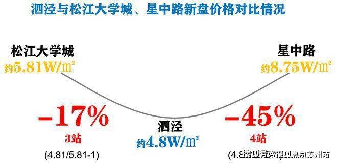 而单单看9号线沿线新盘,泗泾站同样也是处于价格洼地。泗泾站往后3站新房售价高达约5.81W/㎡,向前4站新房售价更是达到了约8.75W/㎡,而居于中间的泗泾均价则只有约4.7W/㎡,洼地属性明显,堪称“性价比之王”。
