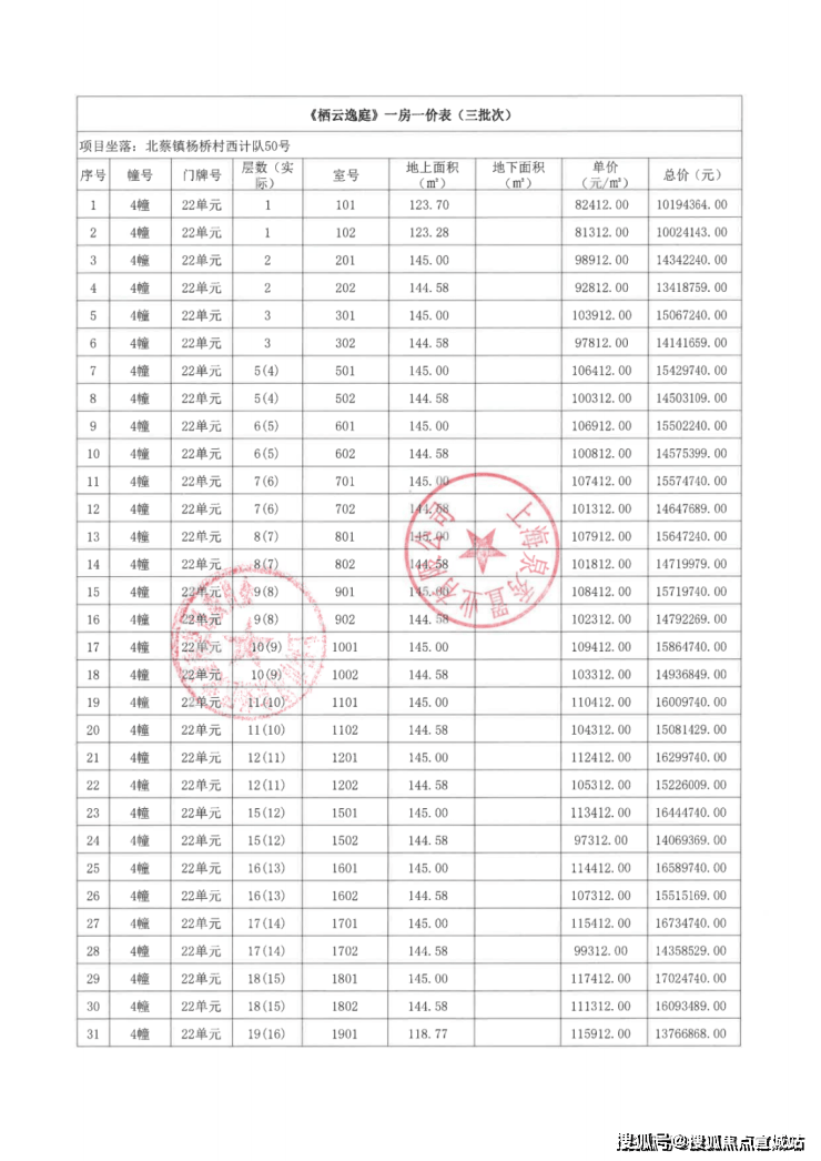 一房一价表如下:
