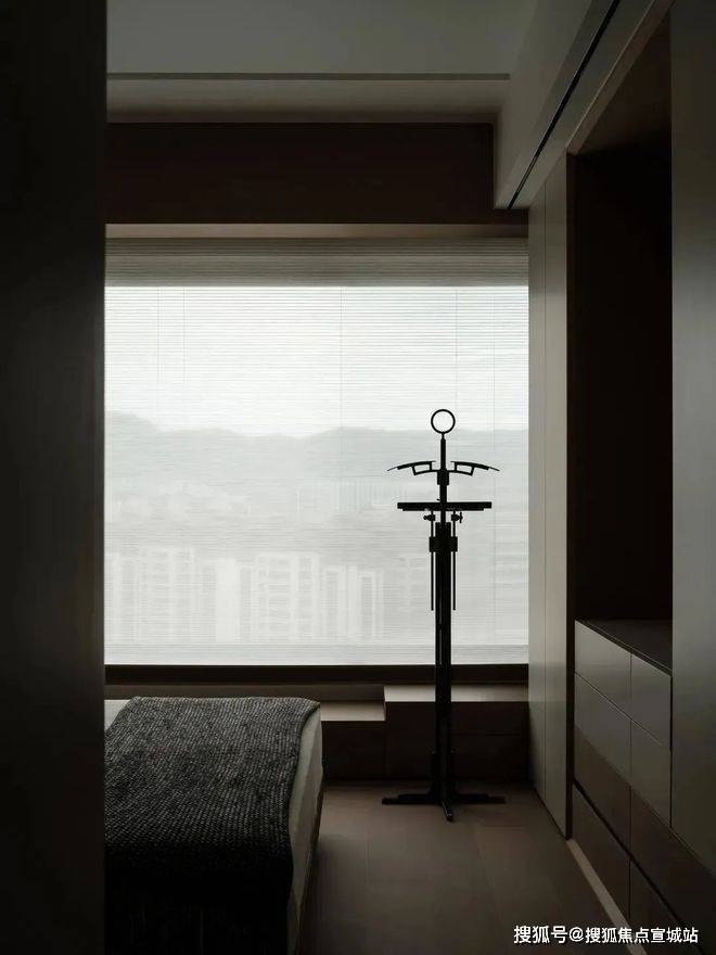 主卧借由落地窗模糊室内外的界限,让自然景观成为生活的一部分。这里不仅是夜晚的休憩地,也是白昼时静思的角落。