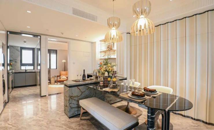 公区设计,巧妙融入百乐门印象、沪西电影院等文化元素,将过去记忆植入场景.嘉佩乐酒店式门庭、琉璃光廊式车库、海派人文哲思花园,以“深度酒店化”营造归家艺术之旅.