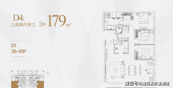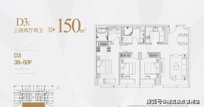 高区为39-50层,户型分别是125㎡,150㎡,180㎡.