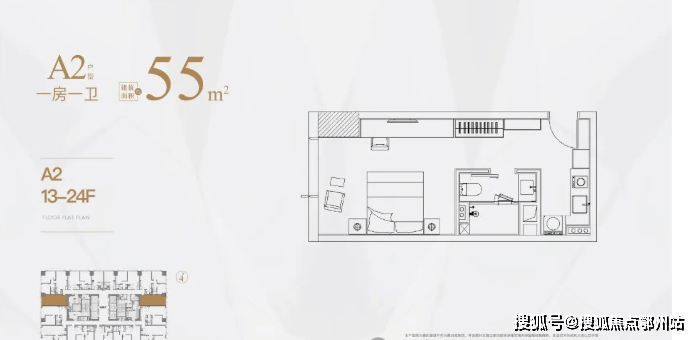 低区13-24层,户型分别是40㎡,55㎡,80㎡,107㎡;