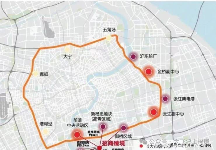 而以前滩、世博为中心,画三个直线约5-7km的生活圈,招商臻境是唯一一个约600万起的新房,而其他的选择,总价起码千万起。