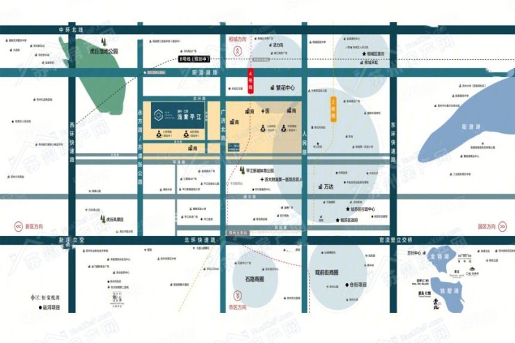 项目周边有西环快速路、阳澄湖路、广济北路等交通道路,地铁2号线、4号线位于项目东侧,同时,8号线(规划中)虎丘湿地公园站位于项目北侧。社区在做到完全人车分流的同时,还拥有集多重功能为一身的专属高端会所,能全方位满足不同业主的各类居住要求。