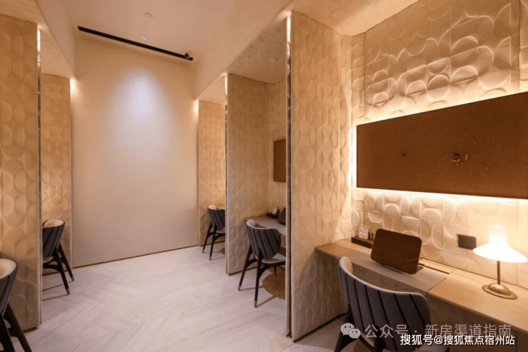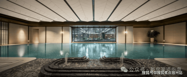 恒温泳池:第一,采用了景德镇烧制的陶瓷马赛克,独特的釉面色彩由景德镇老师傅手工浇筑而成,充满人文艺术底蕴;第二,羽毛天花造型,由600余件铝板打造,表面采用了仿贝壳纹的艺术漆处理,带来松弛度假感;第三,不仅配置了约25m×10m的4道泳池,还采用了奥运会同款空调除湿系统,彰显高档品质细节!