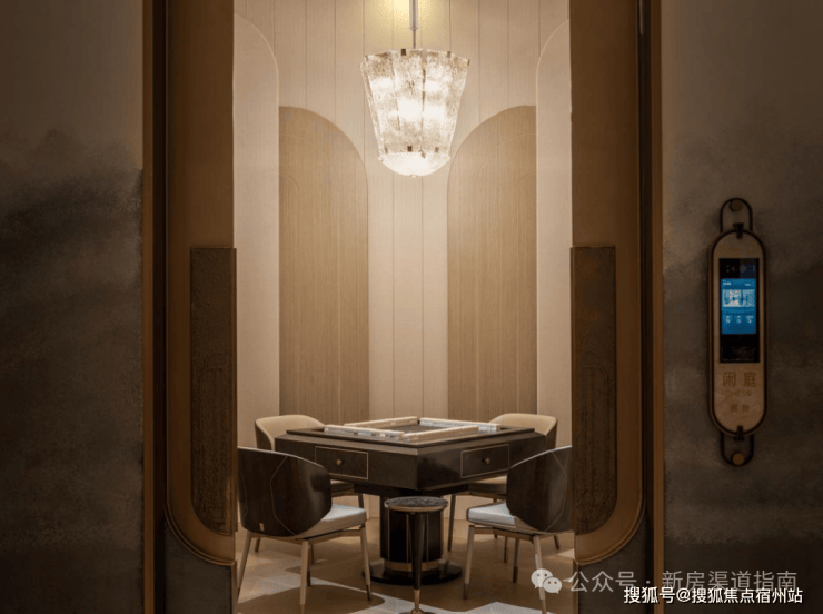 私宴厅&棋牌室承载了业主宴请、聚餐、洽谈、品茗、娱乐等多元社交场景。私宴厅当中悬挂的石材,来自项目团队多番挑选,来自一个奢石展馆里的孤品,不仅拥有昂贵的蓝色色泽,天生的羽毛状纹理更是罕见!