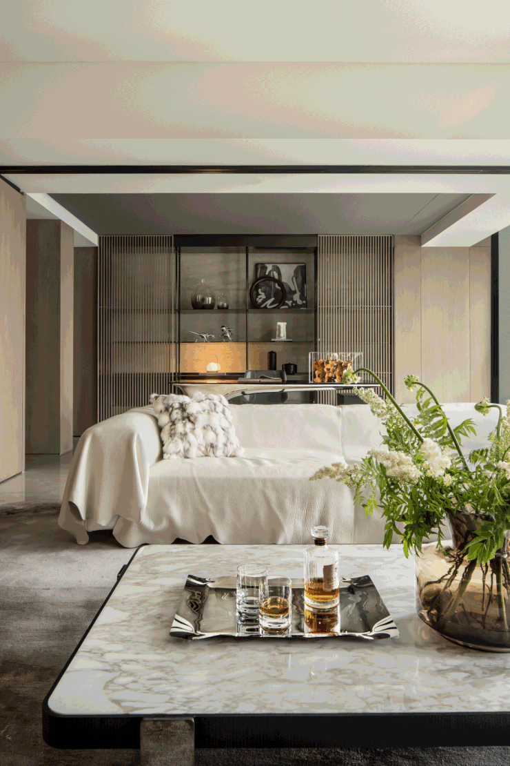 Theelectricdoorservesasabridgeconnectingthelivingroomandthestudy,amediumforspatialtransformation.It'snotjustadoor;it'sanembodimentofalifestyle,allowingresidentstofindaserenecornerintheirbusylivestoenjoythepleasuresofreadingandreflection.