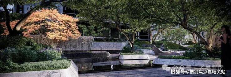 景观设计采用森系精致艺术酒店式氛围,得益于建筑的布局设计,小地块也能设计出大面积景观园林。