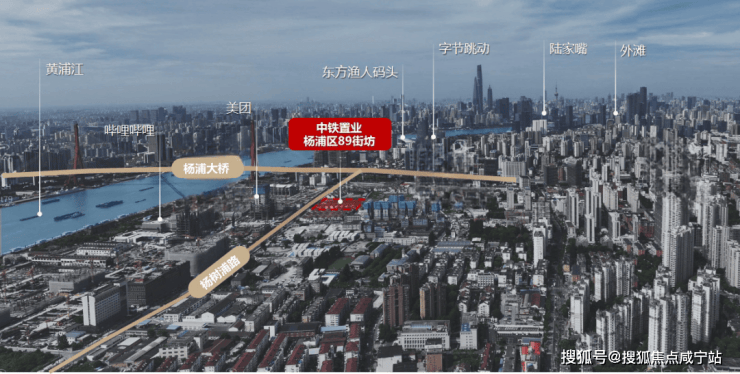 地理上看,中铁杨浦滨江项目直距黄浦江岸约500米,周边是星空华文、美团上海科技中心、B站总部、超级合生汇等头部项目.