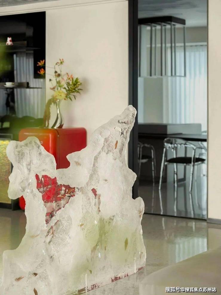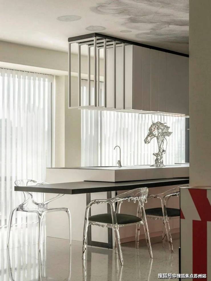 通过亚克力餐椅,与远处“冰川”达成艺术共鸣。