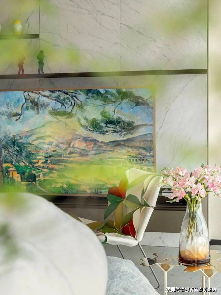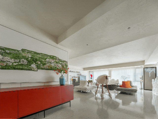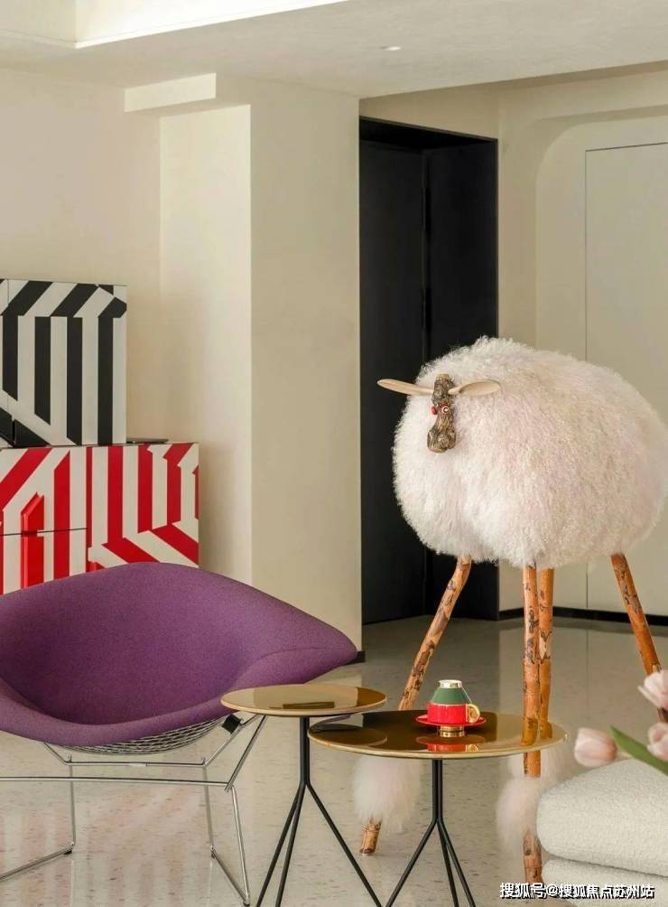 通过可爱绵羊、绿植、艺术物件和适当家具等,打造丰盈的艺术画面。