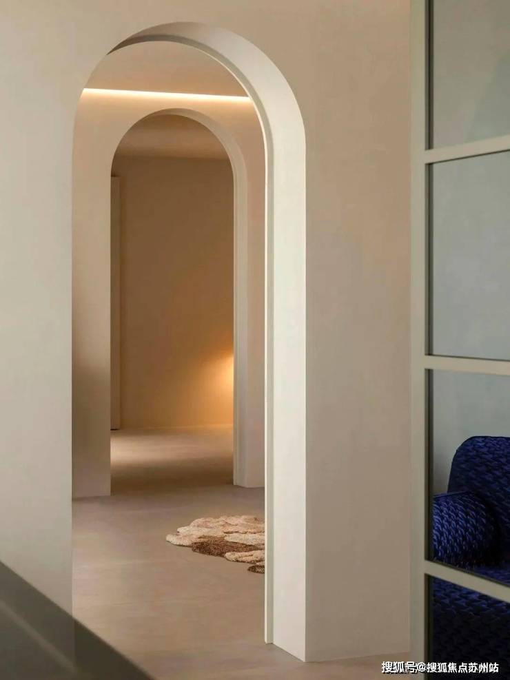 墙体蕴含原始纹理组合拱形门,打造洞穴般的观感。