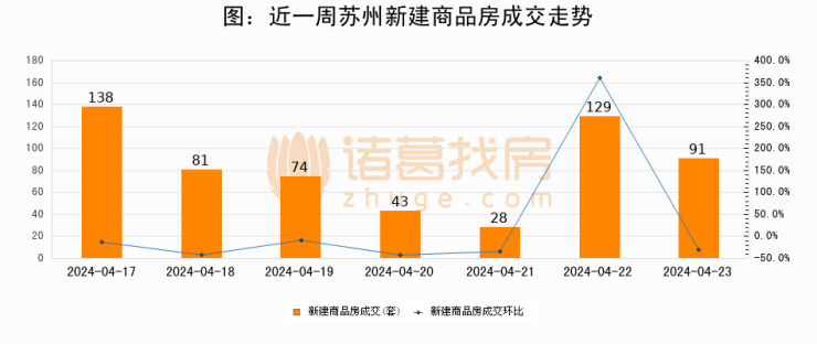 【苏州成交日报】04月23日新房成交91套、二手房281套;涨价房源80套