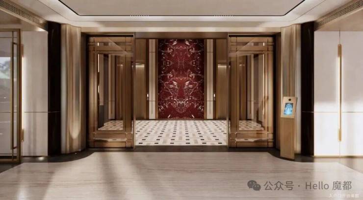 凝练上海城市文化符号,以更多的思考构建生活场景.博埃⾥建筑设计事务所(SBA),用红色大理石为空间注入活力与激情,为住宅设计现代简约的意大利风格大堂.明艳馥郁的红色大理石,献映鎏金时代ArtDeco经典的摩登瑰丽,意式风情&海派精髓交织的精致典雅,于传承与创新中孕育而生.