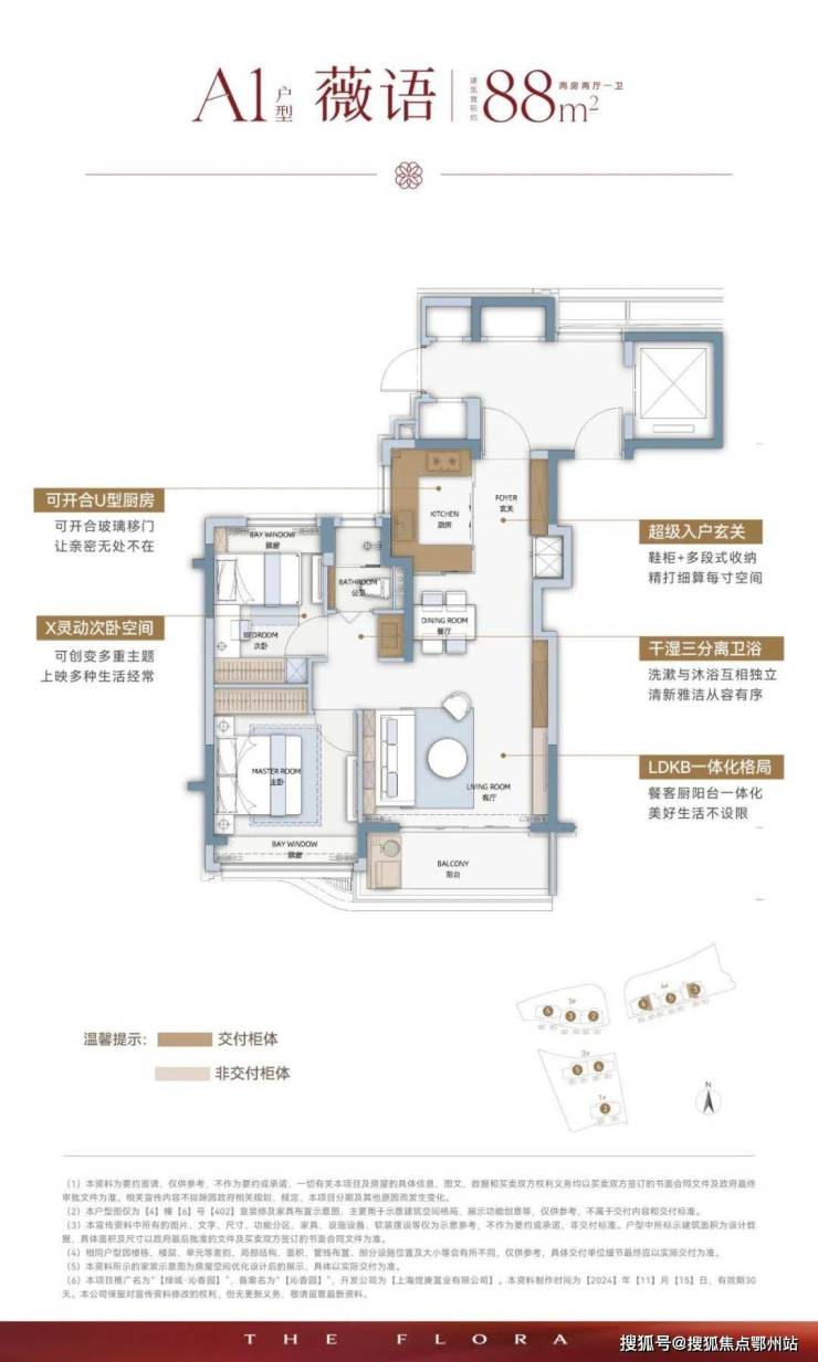 装标和建面约88㎡的户型总体是一致的,厨房多了一个灶蒸烤一体机.