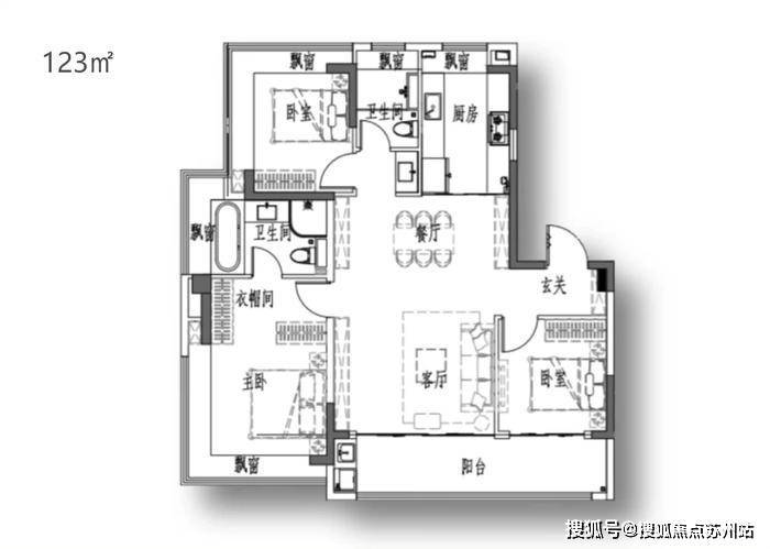 目前建面约123㎡小高层户型已经曝光!