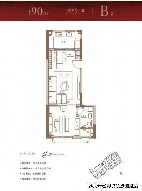 此外,除了上述百平2房户型外.还推出了建面约90㎡的一房设计.该设计专为追求精致生活的都市精英量身打造,以套房主卧为核心,营造出尊崇而舒适的居住体验.