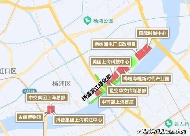 杨浦滨江拥有美团上海科技中心、bilibili全球总部等大型企业总部;区域内还拥有字节跳动上海滨江中心、中交集团上海总部、中国节能·上海首座等企业上海总部落址,预计产业规模达3000亿,导入至少20万人口。
