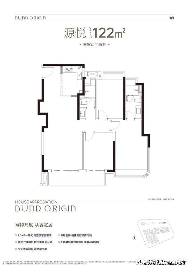 A户型是4房2厅2卫格局,三开间朝南+LDKB一体化+全卧室带飘窗+主卧套房设计+动静分离,居住功能性更强。